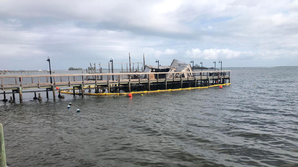 But then, the unthinkable happened in 2021 when the Ice House floor collapsed into the Indian River Lagoon, creating floating debris hazards. Upon further inspection, the building posed safety hazards to the existing reconstructed dock and to curious boaters who might try to access the collapsing building.
