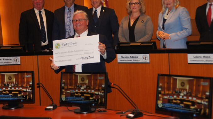 On Tuesday, November 9, 2021, Indian River County Property Appraiser Wesley Davis presented a check for $106,572 to the Indian River County Board of County Commissioners representing the amount of last year’s budget returned.