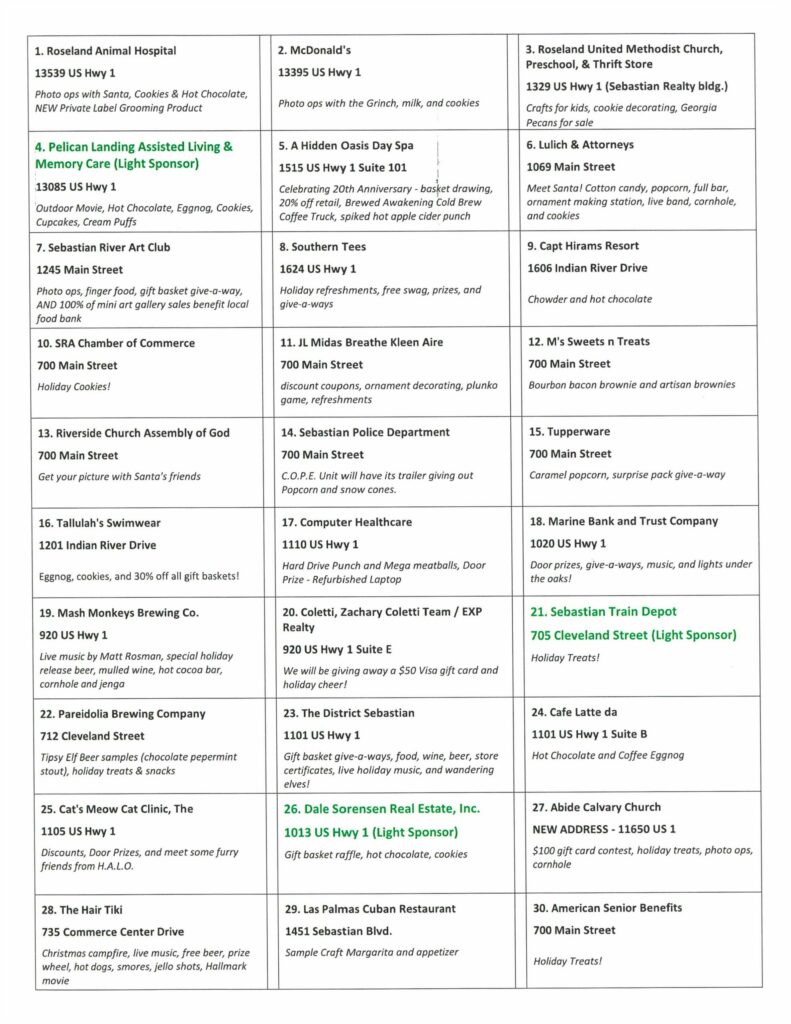 Participating locations will be lit up with holiday lights & decorations and offer discounts, door prizes, complimentary food & refreshments, and fun activities for the whole family.