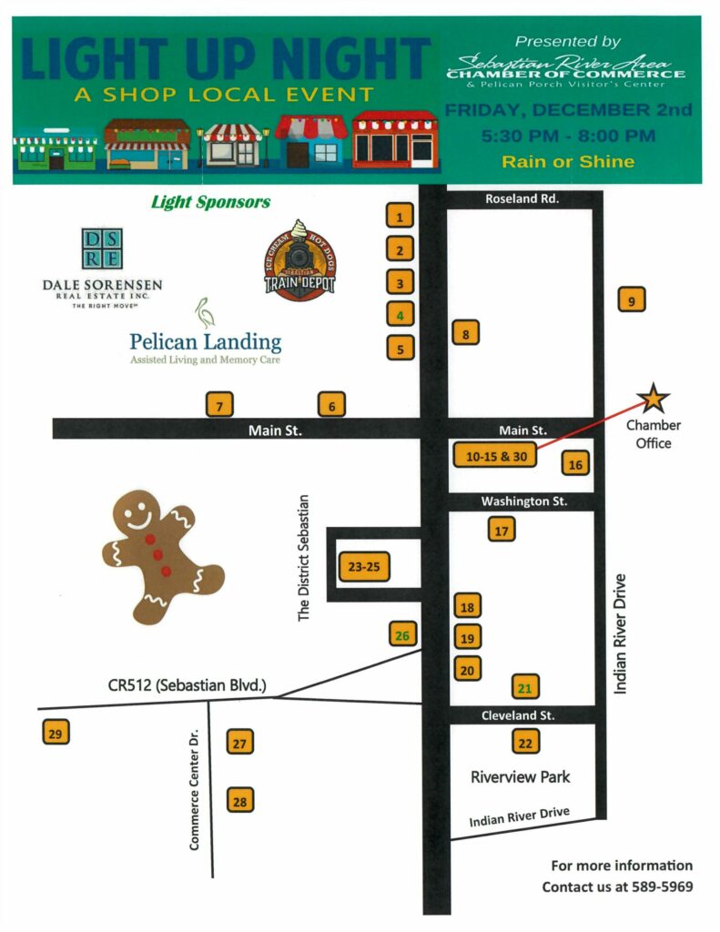 If you want more information about “Light Up Night,” contact the Sebastian River Area Chamber of Commerce President/CEO Cheryl Thibault by email at CThibault@sebastianchamber.com or call (772) 589-5969.