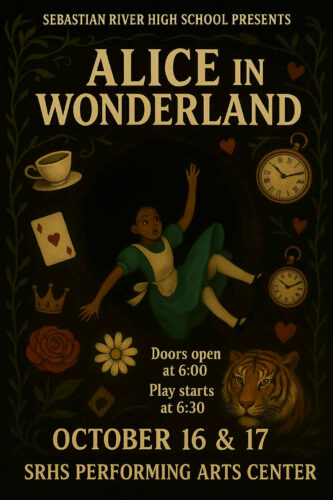 The SRHS will be doing a performance of Alice In Wonderland on Thursday, October 16th and Friday, October 17th at the SRHS performing art center. Doors open at 6:00 pm, show starts at 6:30 pm.