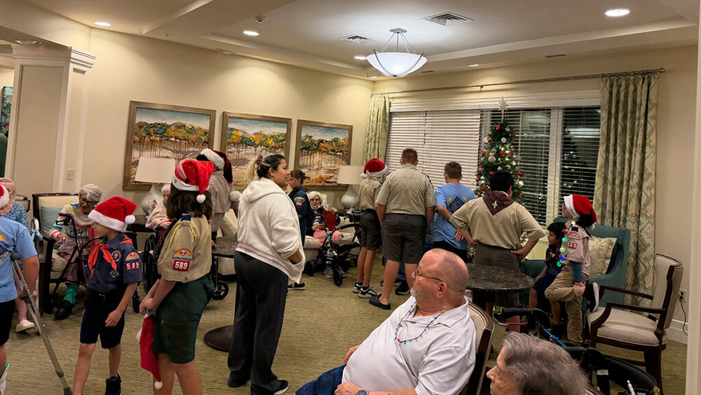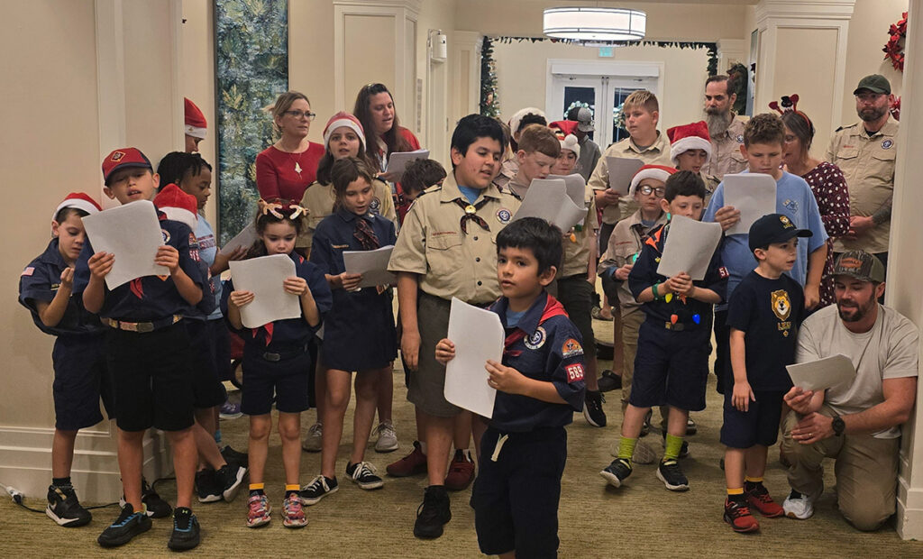 SEBASTIAN — Cub Scouts from Pack 589 spread holiday cheer Thursday at a local assisted living facility, delivering handmade gifts and belting out Christmas carols to residents and staff.