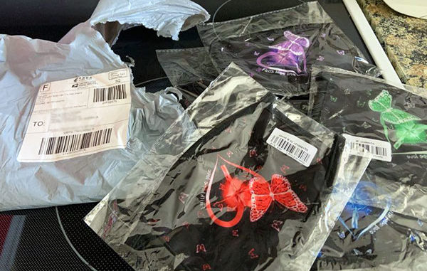 We were expecting a package from an order we placed from a Facebook ad. It was a great deal, 5 Dooney and Bourke totes for $24.99 each. That should have been my first warning sign.