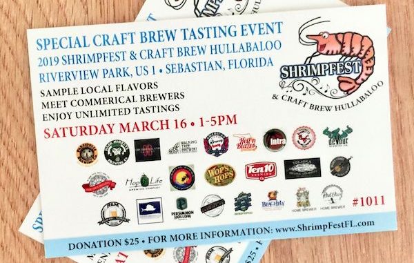 SEBASTIAN – Sebastian Daily is giving away 2 Shrimpfest & Craft Brew Hullabaloo Special Craft Brew Tasting Event Tickets. The special tasting event will be on Saturday, March 16, 2019, from 1:00 p.m. – 5:00 p.m. at Riverview Park in Sebastian.