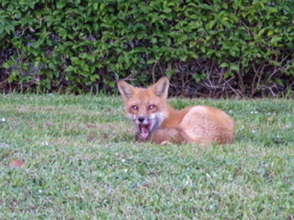 Goodger recounted to Sebastian Daily, “The fox had just chilled in my yard and then left and crossed the road by Highland Animal Hospital. Then he started running towards the river on the side of the road. I do not know where the fox is now.”