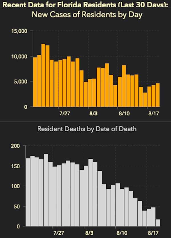 We also enclosed a chart showing the number of COVID-19 cases and deaths are slowing in Florida.