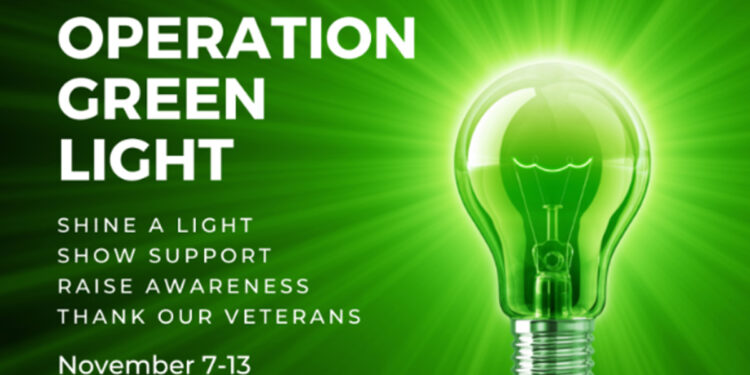Operation Green Light is November 7th -13th for Veterans Day; however, participants are encouraged to keep the green light up all year round.