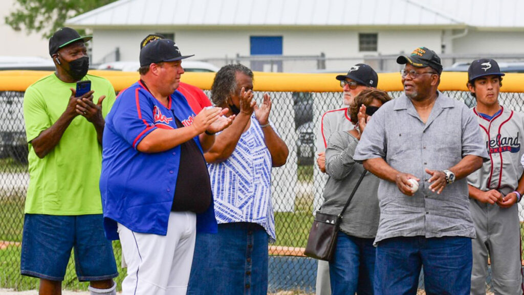 On Thursday, April 15, 2021, Sebastian River High School celebrated Jackie Robinson Day at their varsity baseball game with the family of negro pro and semi-pro Ernest ‘Gator’ Barnwell. His nephew Leon Barnwell made the ceremonial first pitch as other family members and spectators watched.