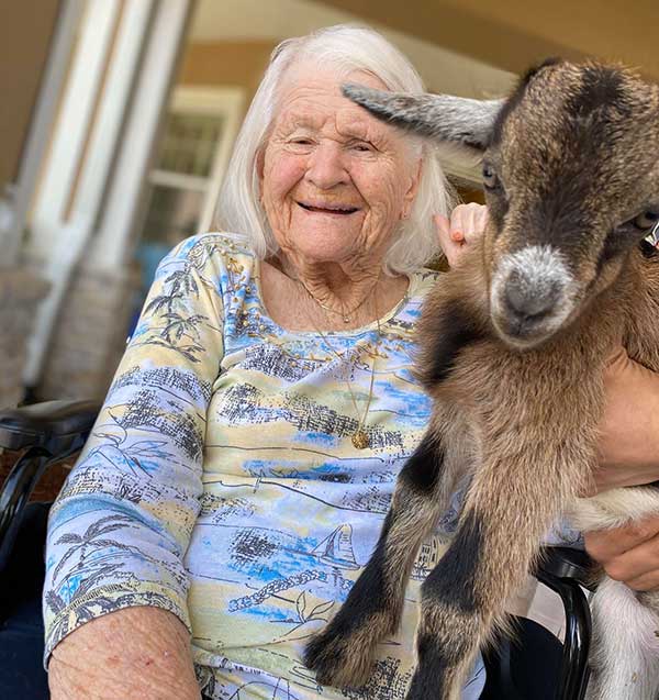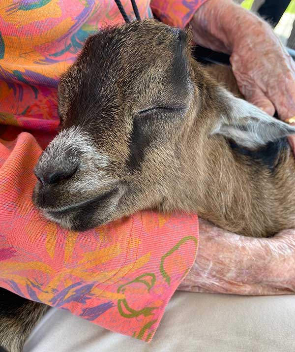 The seniors loved the baby goat and the other animals. It made their day to pet these special visitors, which included a miniature pony.