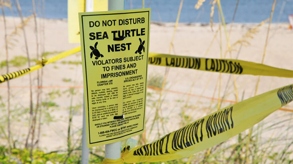 Getting too close (50 feet or less) to nesting sea turtles can cause them to leave the beach before they complete nesting. Remember – harming or disturbing nesting sea turtles and their nests, eggs and hatchlings is illegal.
