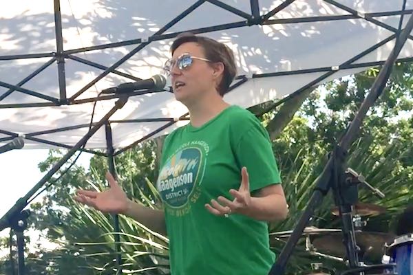 “When we think about the people in power, they’re not listening or representing us. They’re taking in big money from businesses and corporations, and those are the folks they’re listening to,” Patel told a crowd at Pareidolia Brewing Co. in Sebastian.