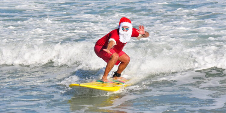 Over 12,000 spectators descended upon Cocoa Beach to cheer on more than 400 surfers braving the Atlantic Ocean in festive St. Nick attire.