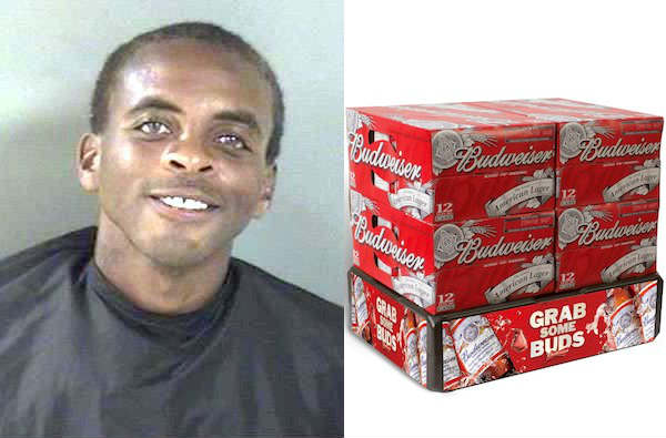 On Wednesday, Reynolds was seen on video surveillance, shown to the deputy, selecting four cases of Budweiser from the beer aisle. Reynolds then moved throughout the store in the grocery aisles and the clothing department before leaving the store.