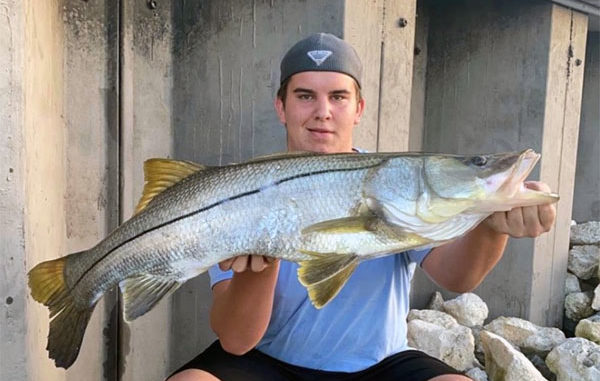 Gavin Coffey (pictured above) says he fishes at the Sebastian Inlet all the time. On this day, he caught a nice Snook. He caught it on a jig, using a spinning rod and reel.