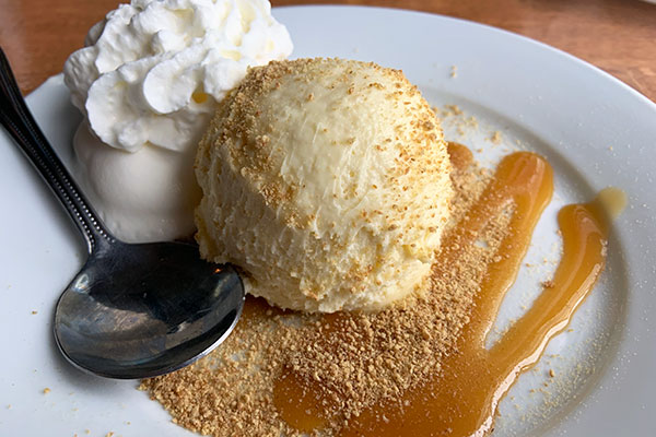 How was it, you ask? It is by far the best cheesecake we’ve had in Sebastian! At first, the cheesecake looks like a scoop of ice cream, but it is cheesecake.