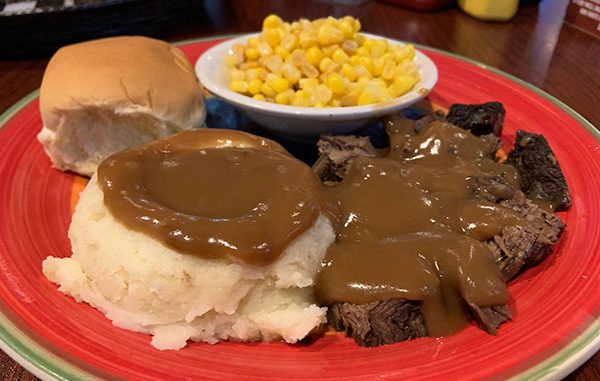 I asked for gravy on both the pot roast and my mashed potatoes. I like to mix my mashed potatoes with corn, so that’s what I ordered with the meal.