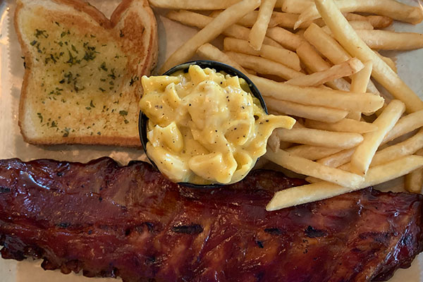 He was also very pleased with his choice. The Homemade Mac & Cheese was remarkable. The ribs are smoked, and we did not see a lot of fat on them. The meat was tender and fell right off the bone. We highly recommend the ribs!
