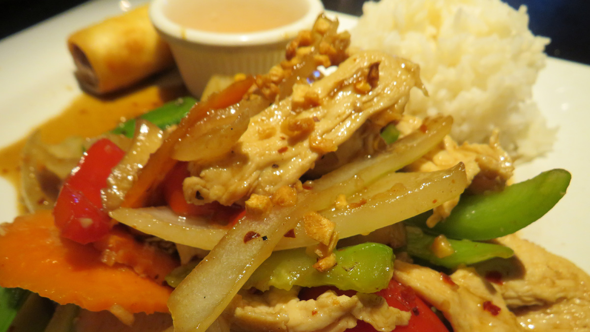 The Cashew Nut Stir Fry is one of my new favorites; it comes with fresh vegetables, rice, chicken and is served with a trademark sauce.