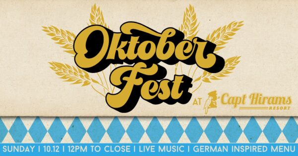 Capt. Hirams Resort will be hosting its Oktoberfest Celebration on Sunday, October 12, 2025, from 12:00 pm - 9:30 pm. They will have live music, German-inspired eats, and the Docktoberfest release brewed in collaboration with Pareidolia Brewing Company.