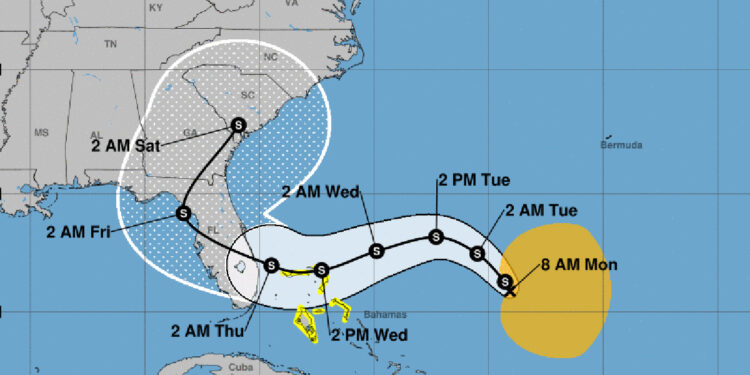 At 9:00 a.m., Nicole is located about 500 miles from the northwestern Bahamas, moving at 14 mph with maximum sustained winds of 45 mph. The storm’s center will approach the Bahamas on Tuesday and is expected to move into Florida by Wednesday night and into Thursday morning.