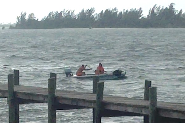 At Tiki Bar & Grill, Bill and Terry Lochman were in a small boat when they had engine failure. They were seen paddling their boat, attempting to make it to the dock. They went under the dock and their boat sunk in the shallow waters just south of the Tiki.