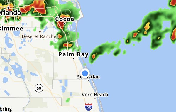 Update: As of 9:35 a.m., the storm is now moving into Palm Bay.