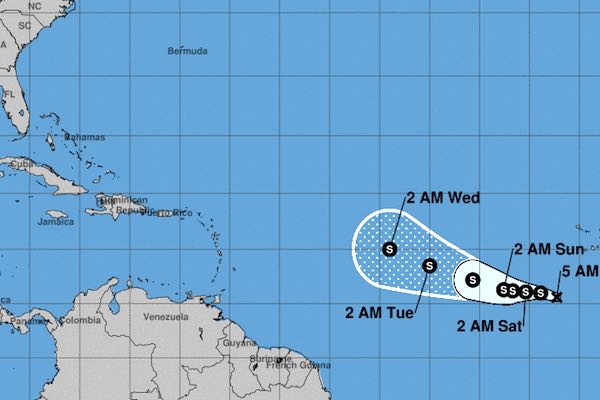 “The NHC forecast calls for gradual intensification during the next 3 days. However, the global models (primarily the GFS and the ECMWF) develop a large upper-level trough over the central Atlantic which will bring high shear over the cyclone by day 4. This should result in weakening as indicated in the forecast,” the National Hurricane Center said.