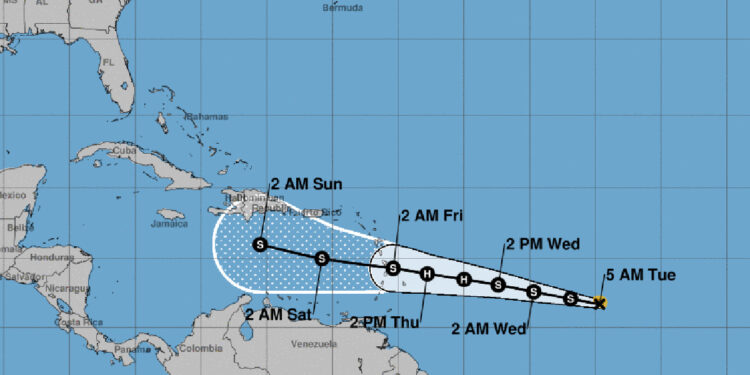 Tropical Storm Bret’s path is heading west and its track will likely remain the same for the next 1 to 4 days. Bret is likely to grow into a hurricane by Thursday, according to the National Hurricane Center (NHC).